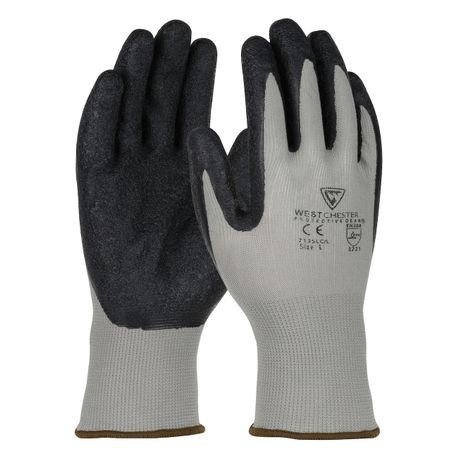 Name:PIP® PosiGrip™ 713SLC/M Unisex General Purpose Gloves, Coated/Work, Seamless Style, M, Latex Palm, 13 ga Nylon, Black/Gray, Knit Wrist Cuff, Latex Coating, Nylon Lining