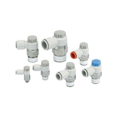 KE SMI SHOP® AS2301F-N01-07SA Universal Push Lock Pneumatic Meter Out Valve With One-Touch Fitting and Sealant, 1/8 in Port, 0.1 to 1 MPa Pressure, Brass/PBT Body